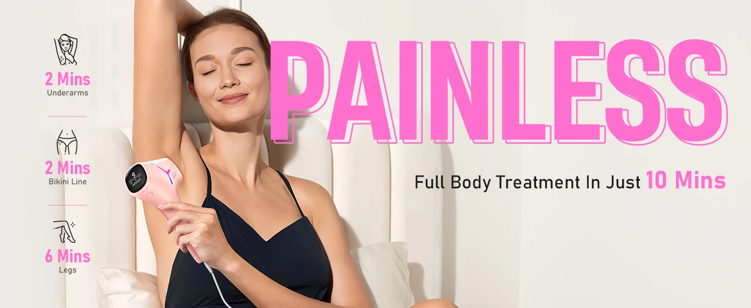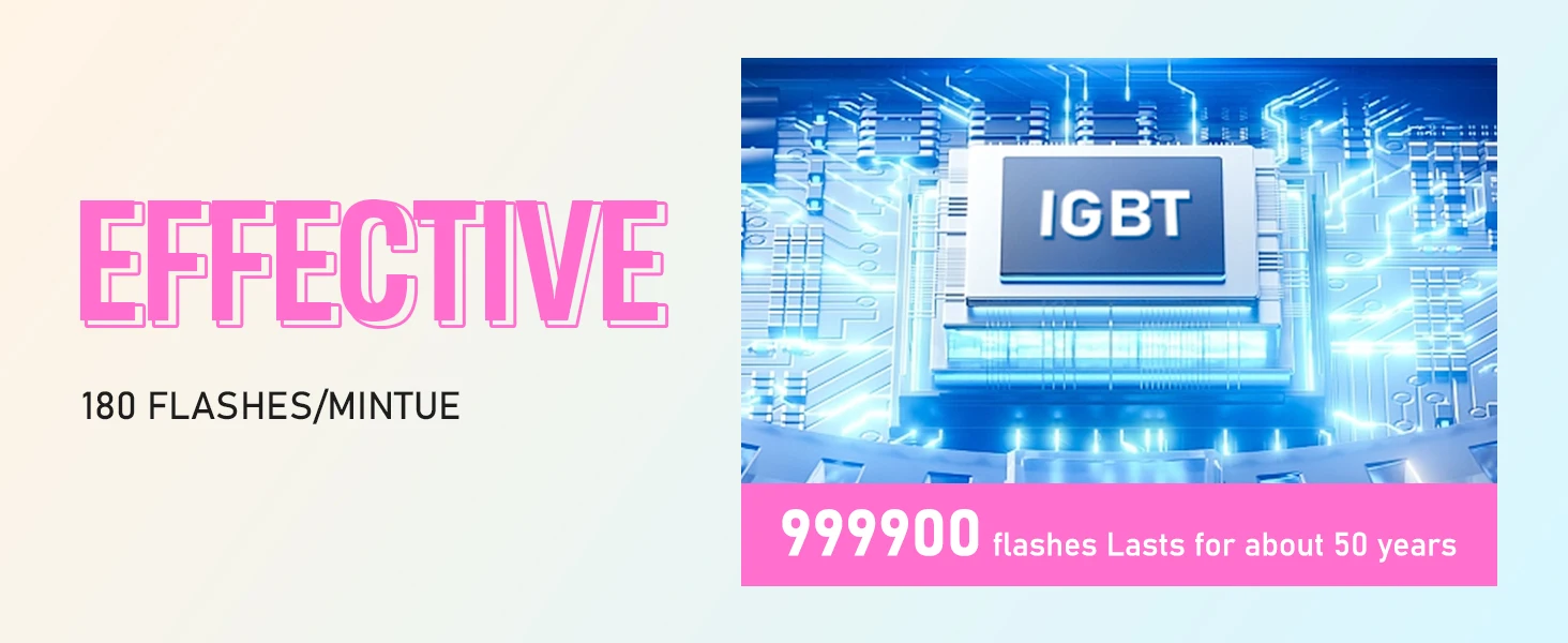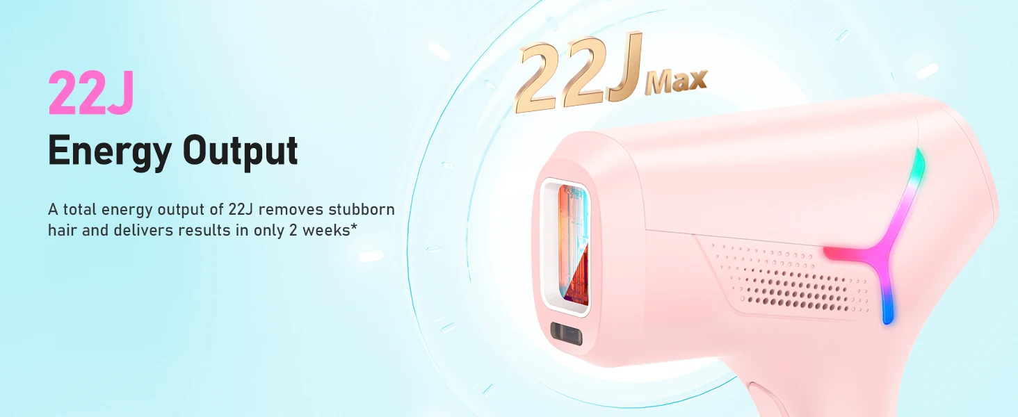 [Nearly Painless Hair Removal at home] Double IGBT pulse technology and realize 0.12S fast flash can deliver two consecutive pulses, reduces the pain caused by a single energy to achieve painless hair remover, max 22J can deep reach and accumulate target hair follicle melanin to fast and effeive removing.