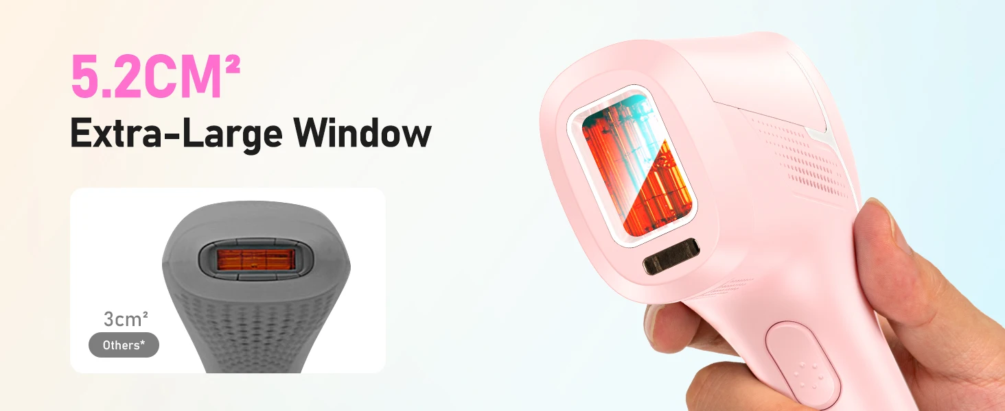 [70% Faster Hair Removal] The laser hair removal can deliver 70% faster effective results than other normal one which because of the updated 5.2 cm² contact windows>3 cm²(other normals). This technique endow you can go out quickly and beautifully, and deal with all kinds of occasions with ease and confidence.